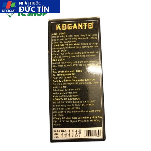 - Các thành phần có trong Koganto là các thảo dược từ thiên nhiên, an toàn, lành tính cho người sử dụng.