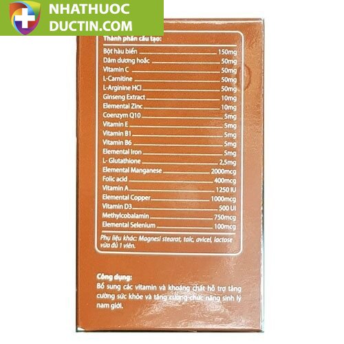 – L-Carnitine, Co-Emzym Q10, Kẽm, Vitamin và các khoáng chất…