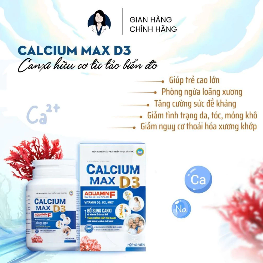 Đánh giá Canxi Hữu Cơ Calcium Max D3 – Canxi Từ Tảo Biển Đỏ Cho Cả Gia Đình + Vitamin D3 K2 – Hộp 60 viên