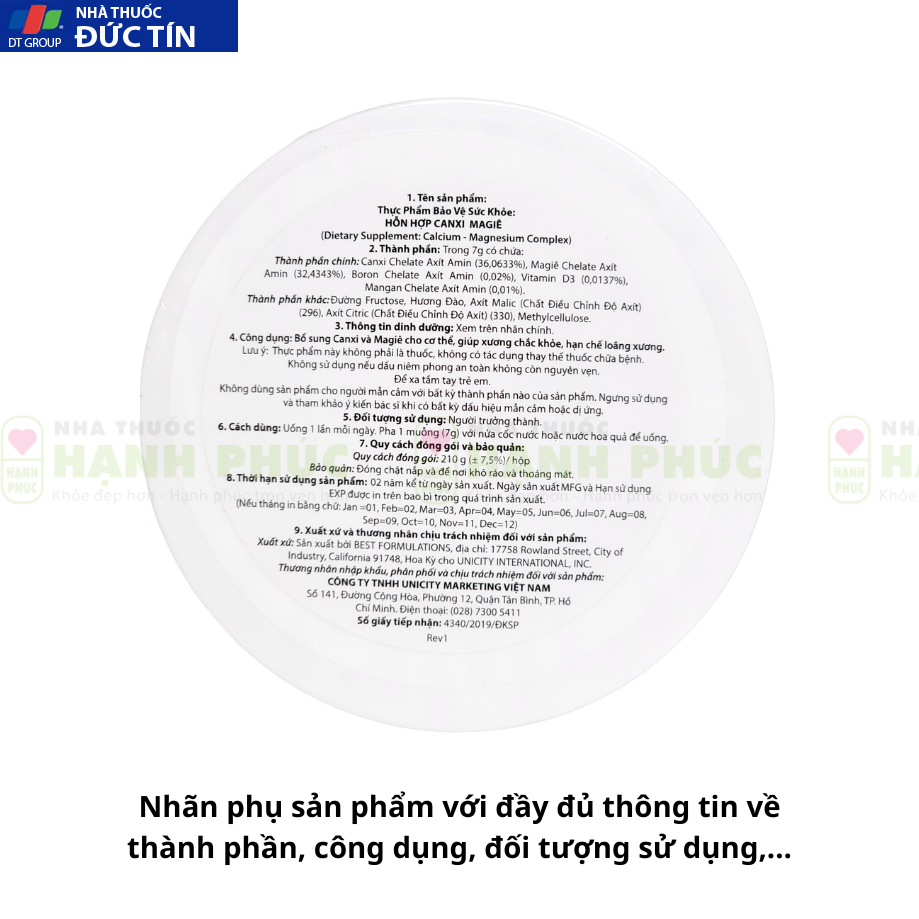Sản phẩm Calcium Magnesium Complex được sản xuất bởi Best Formulations tại Hoa Kỳ cho công ty Unicity international. Thành phần của sản phẩm có nguồn gốc hoàn toàn từ tự nhiên kết hợp với ứng dụng nền khoa học công nghệ tiên tiến nhất. Từ đó, sản phẩm này đã đáp ứng được tất cả các yêu cầu và tiêu chuẩn nghiêm ngặt nhất của Mỹ và chứng minh được chất lượng cũng như hiệu quả của sản phẩm thông qua số người tin dùng trên thế giới.
