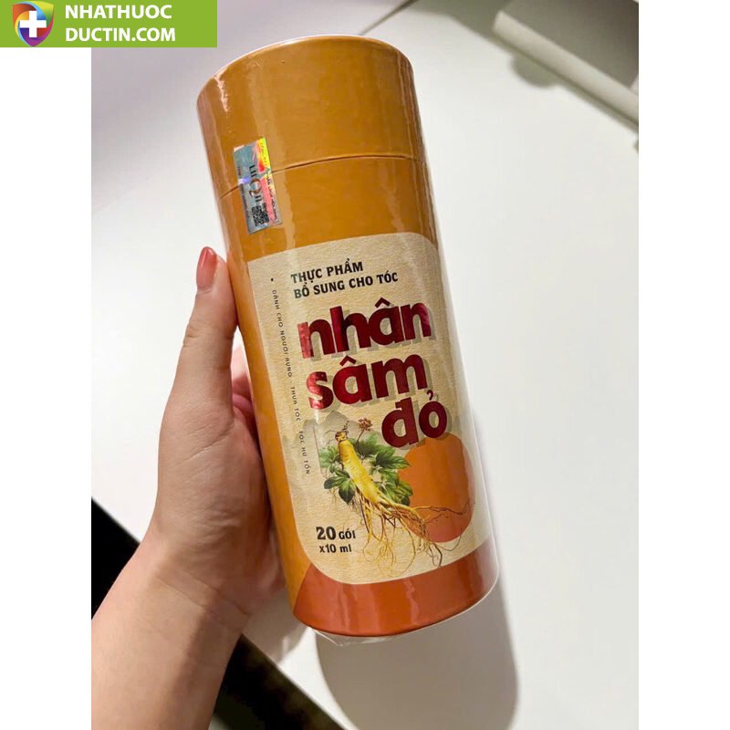 Một hộp có 20 gói dạng cao lỏng, chứa nhiều tinh chất quý giá từ Nhân Sâm và thảo dược thiên nhiên, đặc chế dùng theo đường uống, có tác dụng thanh lọc máu, bổ máu, cung cấp dưỡng chất cho toàn bộ sức khoẻ, nang tóc khoẻ giúp tóc không gãy rụng và mọc thêm tóc mới! trị dứt tình trạng ít tóc, hói đầu. Dùng đủ thời gian sẽ bớt bạc tóc.