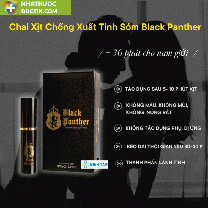 Chai xịt Black Panther chính hãng hiện đang được bán tại NHÀ THUỐC MINH TÂM. Nhà thuốc tiên phong bán lẻ các sản phẩm thực phẩm chức năng CHÍNH HÃNG cho người Việt. Quầy thuốc không chỉ cung cấp các sản phẩm chất lượng mà còn mang lại thái độ phục vụ chuyên nghiệp. Cùng với đó là nhiều chính sách giúp bảo đảm quyền lợi của khách hàng mà công ty đã đề ra.