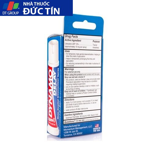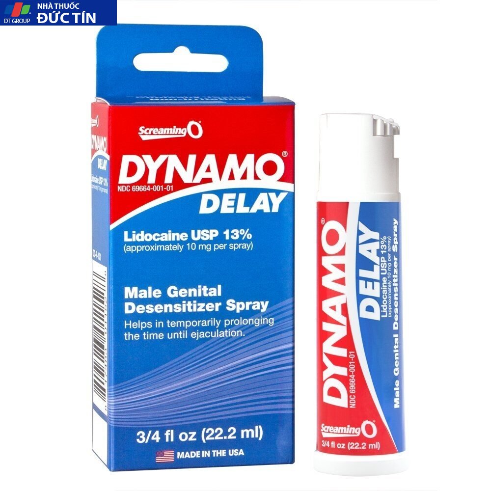 Dynamo Delay là dòng sản phẩm có xuất xứ từ USA với tác động tích cực giúp kéo dài thời gian quan hệ, giúp nam giới kiểm soát tình trạng xuất tinh sớm của bản thân. Sản phẩm là dạng xịt gây tê rất tiện dụng và có thể mang đi đến bất cứ đâu, Dynamo Delay sẽ là giải pháp giúp phái mạnh luôn ở “cửa trên” khi đối diện với người phụ nữ mà mình yêu thương.