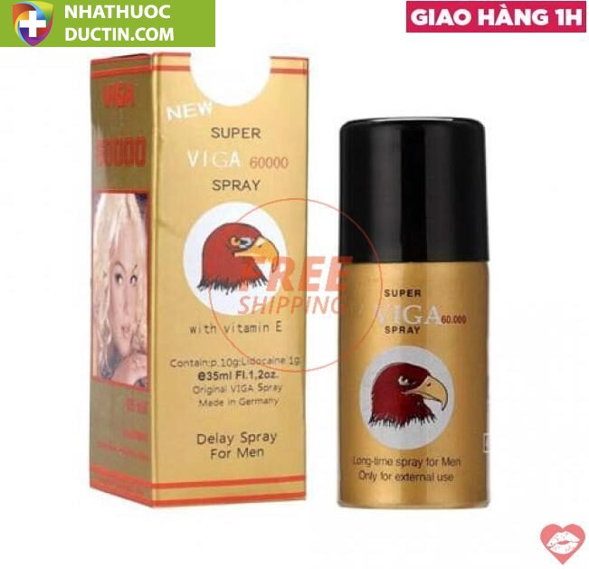 - Thông tin: Chai xịt Super Viga 60000 là sản phẩm dành cho các quý ông bị xuất tinh sớm và mong muốn có một cuộc “yêu” đầy thăng hoa. Thành phần của sản phẩm là hoạt chất Lidocain, chất này gây tê tại chỗ, giảm hưng phấn thụ cảm của “cậu bé”, trì hoãn các cảm giác khoái lạc và hưng phấn. Do đó, cuộc “yêu” được kéo dài hơn và tình trạng xuất binh không tự chủ được kiểm soát.