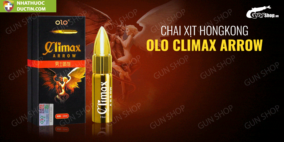 - Thông tin: Chai xịt kéo dài thời gian quan hệ OLO Climax Arrow là dòng sản phẩm thế hệ mới đến từ thương hiệu OLO nổi tiếng thế giới. Sản phẩm chứa đựng thành phần chính là Lidocain, giúp giảm sự nhạy cảm tại đầu dương vật, từ đó kéo dài thời gian cực khoái cho nam giới khi “ân ái” cùng nàng. Dù có khả năng kìm hãm xuất tinh sớm “thần sầu”, thế nhưng siêu phẩm này không hề chứa bất kỳ thành phần độc hại nào, kèm theo mùi hương vô cùng dễ chịu khi sử dụng, bảo vệ sức khỏe của người dùng, giúp cuộc “yêu” của hai bạn luôn thăng hoa rực rỡ.