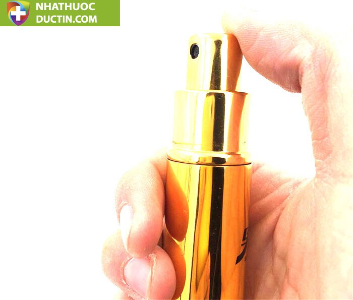 – Khi dương vật đã cương cứng, lắc đều chai, xịt 3 hơi vào 3 điểm sau: 1-đầu khấc dương vật, 2-bên hông trái dương vật, 3-bên hông phải dương vật. Thoa đều cho tan hẳn thuốc trên da.