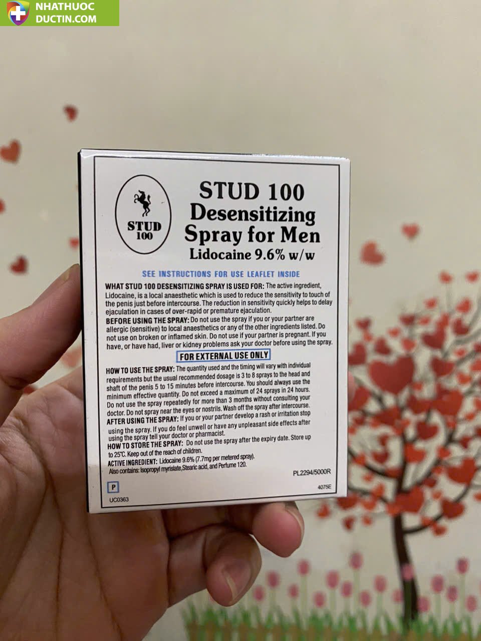 - Stud 100 hạn sử dụng được ghi trên từng sản phẩm, bạn nên kiểm tra kỹ trước khi sử dụng.