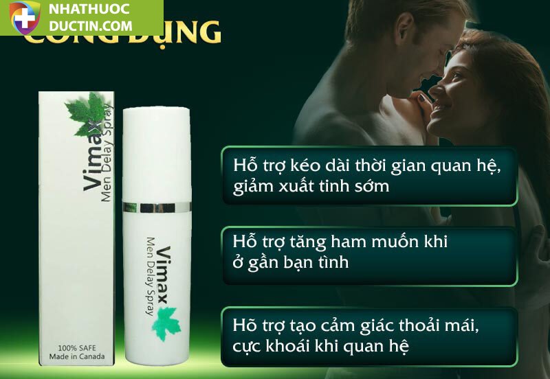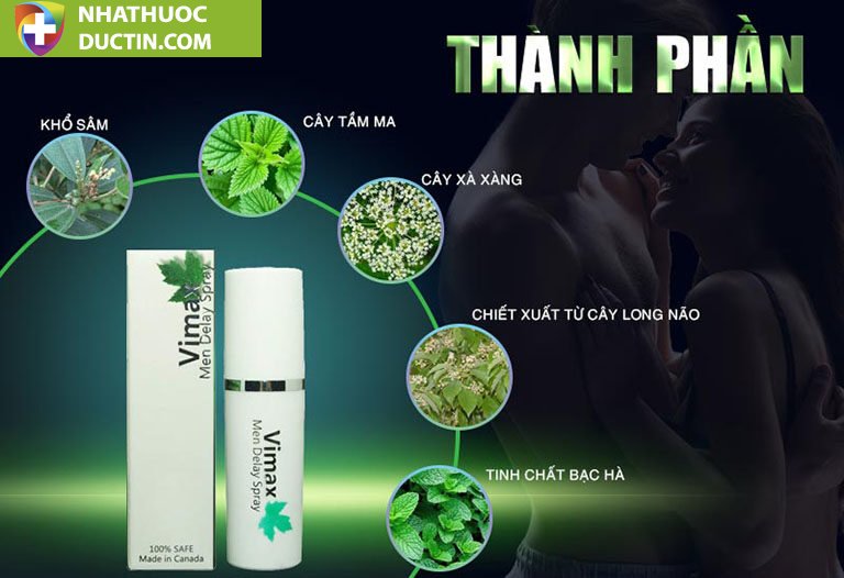 Chai xịt Vimax Men Delay Spray là một loại xịt giúp nam giới giảm tình trạng xuất tinh sớm. Sản phẩm này được chế tạo từ các thành phần chiết xuất từ thiên nhiên, mang tính thân thiện với người dùng. Khi sử dụng, nó giúp kéo dài thời gian quan hệ tình dục của nam giới, giúp họ trở nên tự tin và mạnh mẽ hơn trong chuyện chăn gối.
