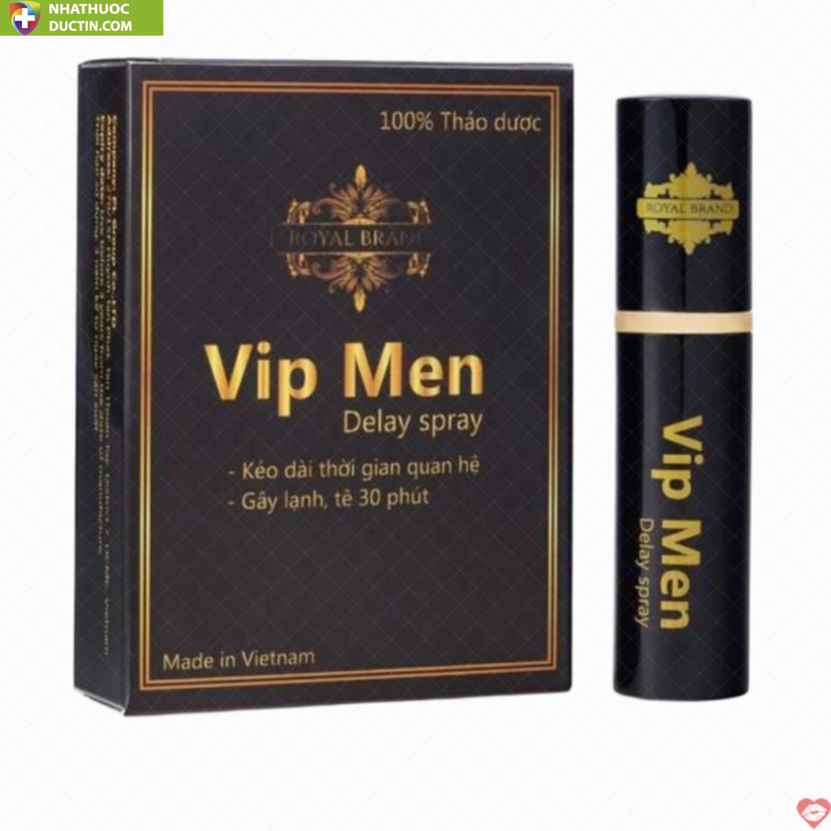Vip Men là sản phẩm chống xuất tinh sớm được sản xuất tại Công ty TNHH PL Group, Việt Nam. Sản phẩm được bào chế dưới dạng dung dịch xịt, đóng gói trong chai xịt dung tích 10ml. Số lần sử dụng của 1 chai tương ứng 10ml là khoảng 35 lần.
