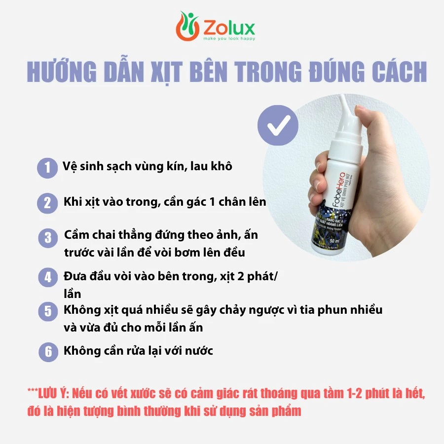 🍀 Môt số lưu ý khi dùng Chai xịt phụ khoa Fobe Hera