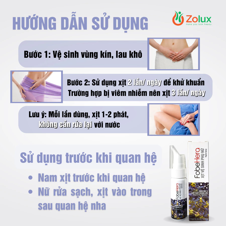 – Điểm nổi bật là Fobe Hera dùng được cho cả nam và nữ. Bạn hãy xịt trực tiếp vào trong “cô bé” và xịt lên “cậu bé” và xoa rửa, không cần rửa lại với nước trước khi “yêu”. Đây là bước chăm sóc thông minh giúp phòng ngừa viêm nhiễm do vi khuẩn, nấm lây chéo trong sinh hoạt vợ chồng.