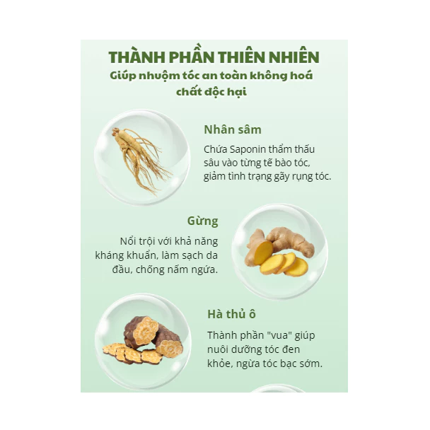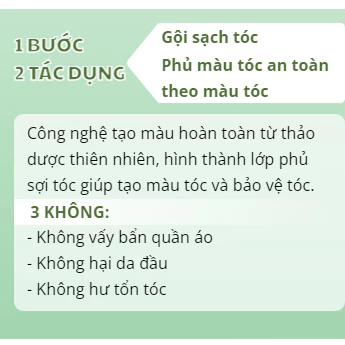 – Không chứa hóa chất, không gây mùi khó chịu, không tạo cảm giác châm chích, ngứa rát mỗi lần nhuộm