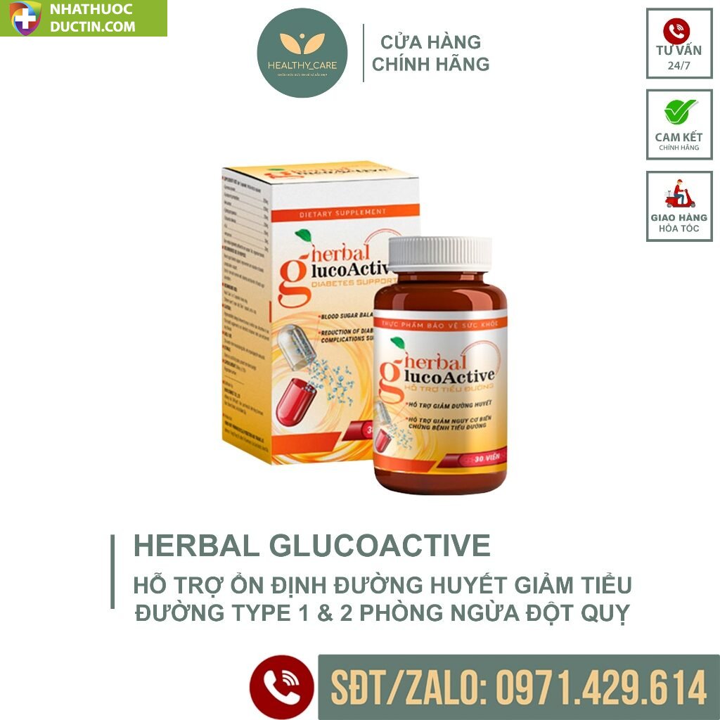 ![[ CHÍNH HÃNG ] Herbal Glucoactive Viên Uống Hỗ Trợ Ổn Định Đường Huyết Giảm Tiểu Đường Tuýp 1 & 2 Phòng Ngừa Đột Quỵ 2 [ CHÍNH HÃNG ] Herbal Glucoactive Viên Uống Hỗ Trợ Ổn Định Đường Huyết Giảm Tiểu Đường Tuýp 1 & 2 Phòng Ngừa Đột Quỵ - Ảnh 2](https://nhathuocductin.com/wp-content/uploads/2024/04/chinhhang3.jpg)