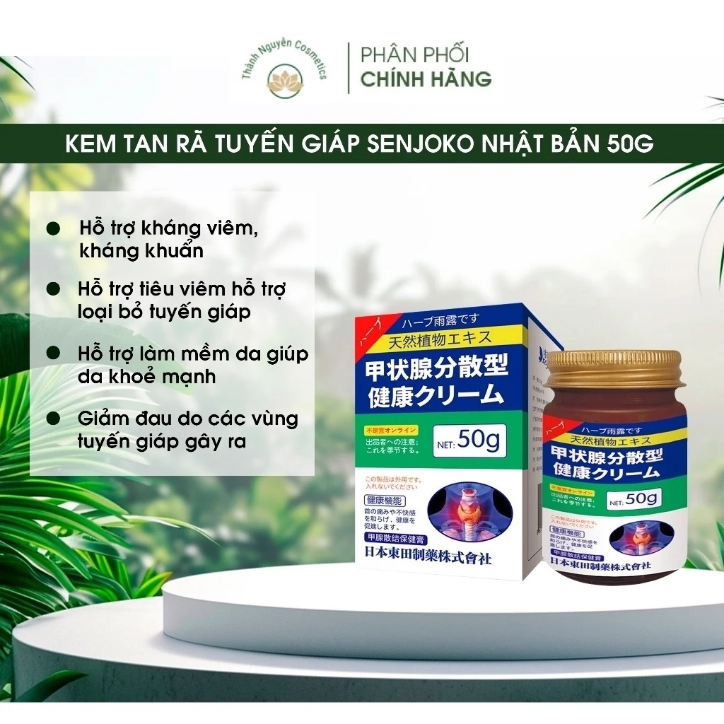 Kem Tan Rã Tuyến Giáp Senjoko hỗ trợ tiêu viêm hỗ trợ loại bỏ tuyến giáp, hỗ trợ làm mềm da giúp da khỏe mạnh, hỗ trợ giảm đau do các vùng tuyến giáp gây ra.