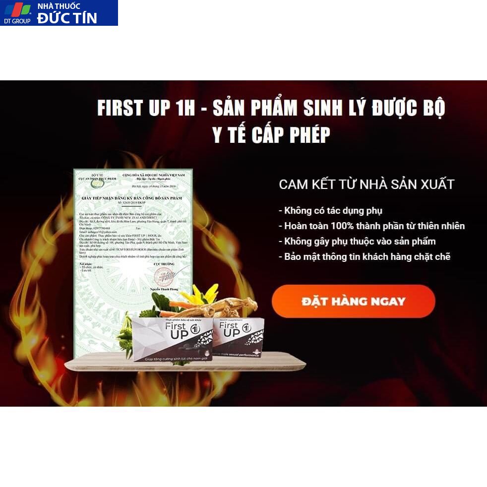 – First Up 1H kích thích quá trình sản sinh hormone sinh dục nam testosterone, giúp cân bằng nội tiết tố Nam giới! Tăng cường chất lượng và số lượng tinh trùng, cải thiện tình trạng suy giảm ham muốn và hiếm muộn ở nam giới