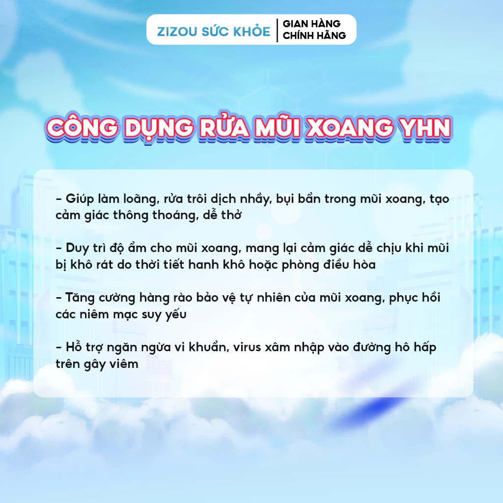 3️⃣ Công dụng sản phẩm Rửa mũi xoang YHN muối ưu trương giảm viêm xoang, viêm mũi mãn tính 70ml ZIZOU: