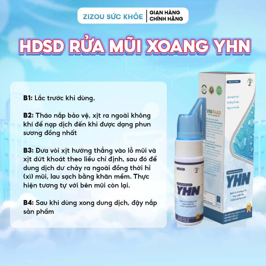 4️⃣ Hướng dẫn cách sử dụng sản phẩm Rửa mũi xoang YHN muối ưu trương giảm viêm xoang, viêm mũi mãn tính 70ml ZIZOU: