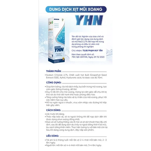 ~ Tên sản phẩm: Dung dịch rửa mũi xoang YHN
