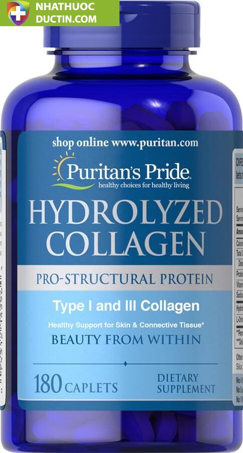 - Collagen thủy phân Puritan’s Pride Hydrolyzed Collagen 1000mg tăng liên kết các mỗi cơ trên da, tạo nên độ săn chắc và tính đàn hồi của da. Từ đó giúp làn da tươi trẻ, mịn màng