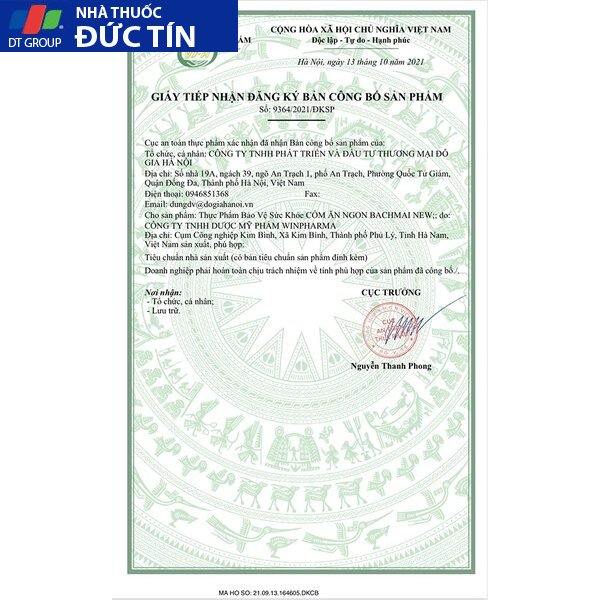 -Giấy phép Cục ATTP – Bộ Y Tế số: 9364/2021/ĐKSP