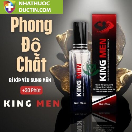 Chai Xịt King Men là chai xịt hỗ trợ chống xuất tinh sớm cho nam với thành phần thiên nhiên được chứng minh lâm sàng rất lành tính, không gây dị ứng, phản ứng phụ và hiệu quả nhanh, kéo dài thời gian giúp phái mạnh giữ vững phong độ giúp cho quý ông càng ngày càng lấy lại tự tin và phong độ, từ đó nâng cao chất lượng cuộc yêu và thăng hoa trong chuyện tình.