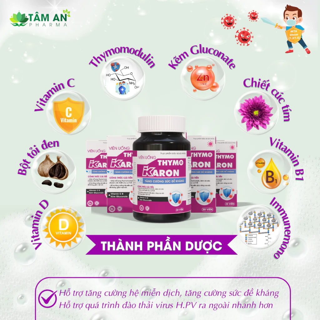 ![[COMBO 2 HỘP] Viên Uống THYMOKARON Lọ 30 Viên - Hỗ Trợ Tăng Miễn Dịch - Hỗ Trợ Đào Thải H.P.V - Thoát Khỏi Sùi Mào Gà 28 caron6](https://nhathuocductin.com/wp-content/uploads/2025/03/caron6.webp)