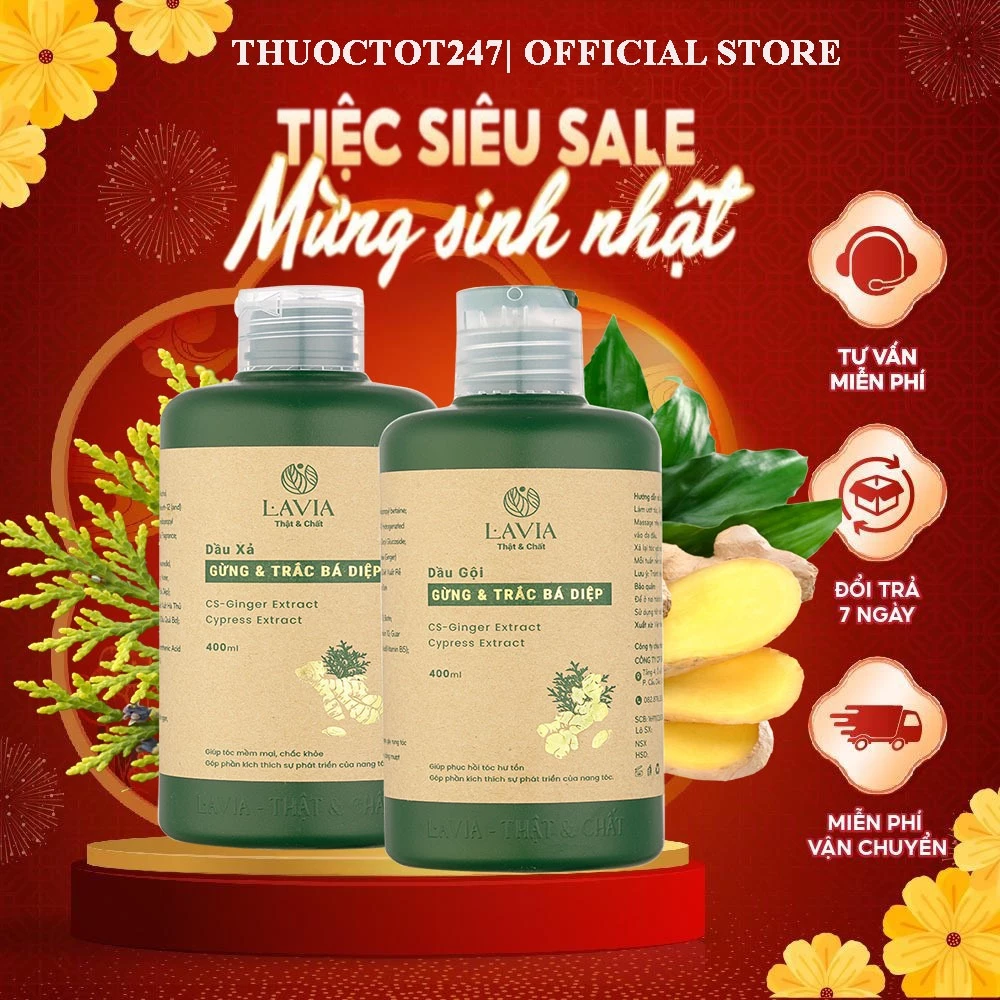 Đánh giá Combo Dầu gội + Dầu xả lavia gừng và trắc bá diệp hỗ trợ mọc tóc giảm rụng tóc 400ml