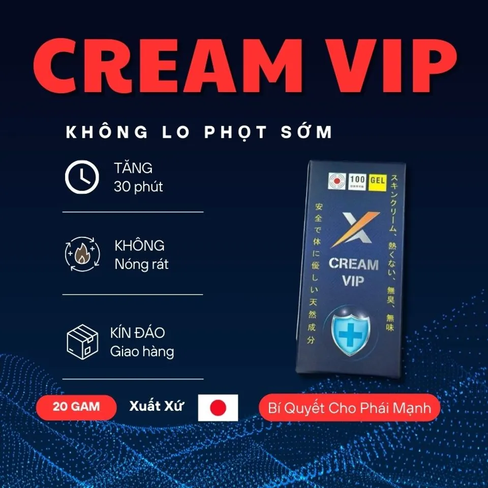 Cream Vip là kem bôi kéo dài thời gian yêu của Nhật hiện đang được nhiều đấng mày râu yêu thích sử dụng, bởi hiểu quả mà nó đem lại. Sản phẩm hỗ trợ kéo dài thời gian, làm giảm độ nhạy cảm ở “cậu bé” nhờ đó giúp nam giới kiểm soát được thời gian cương cứng, giúp kéo dài thời gian trong mỗi cuộc yêu.