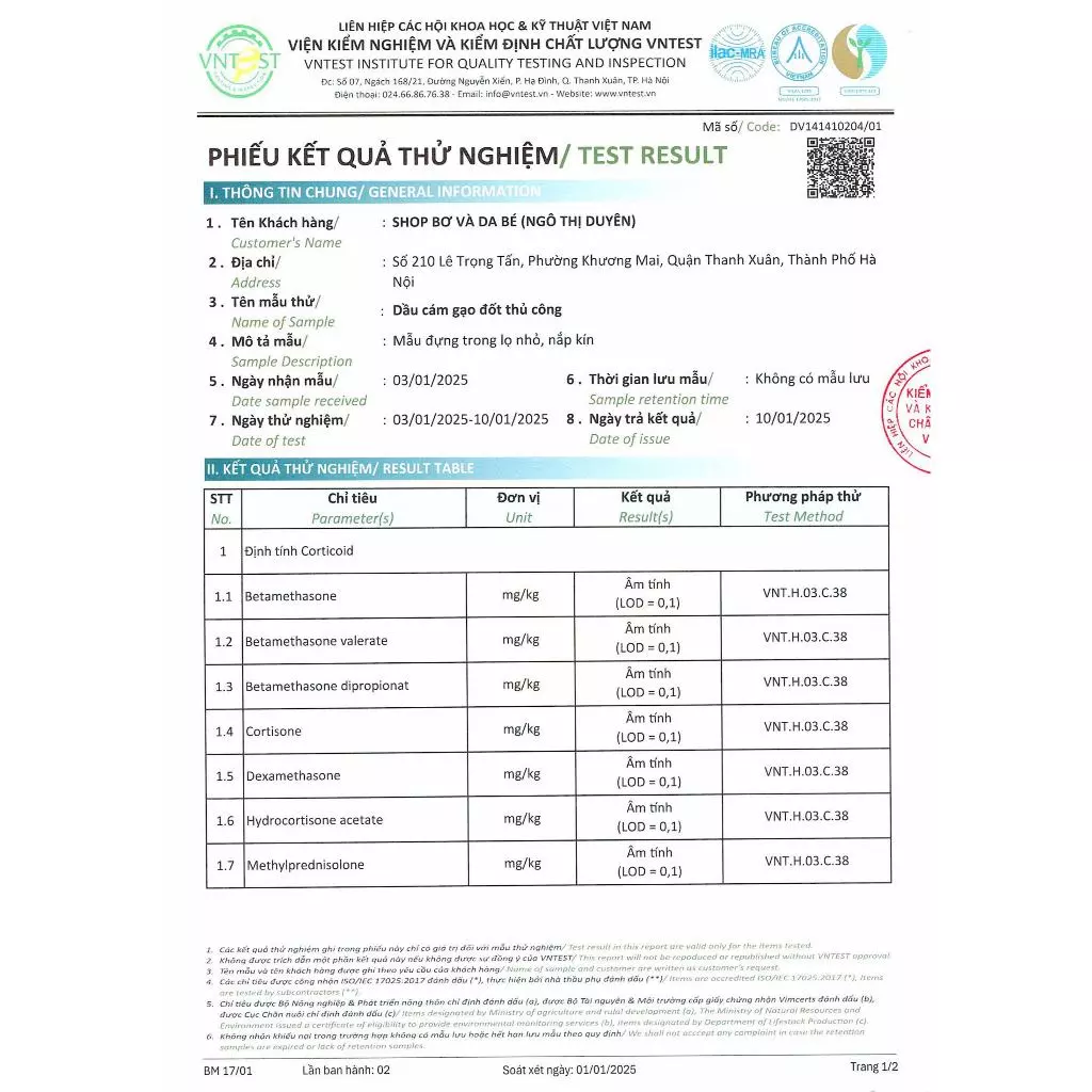 Đánh giá Dầu cám gạo nguyên chất Bơ và da bé viêm da cơ địa, vảy nến, đốt thủ công (không Corticoid) 5ml