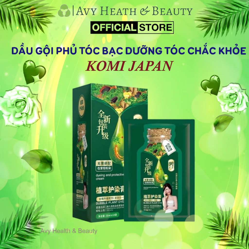Dầu Gội KOMMI JAPAN Phủ Bạc – Hộp 10 Gói Dầu Gội Nhuộm Tóc Phủ Bạc KOMMI JAPAN Đơn Giản Tại Nhà Chiết Xuất Thiên Nhiên