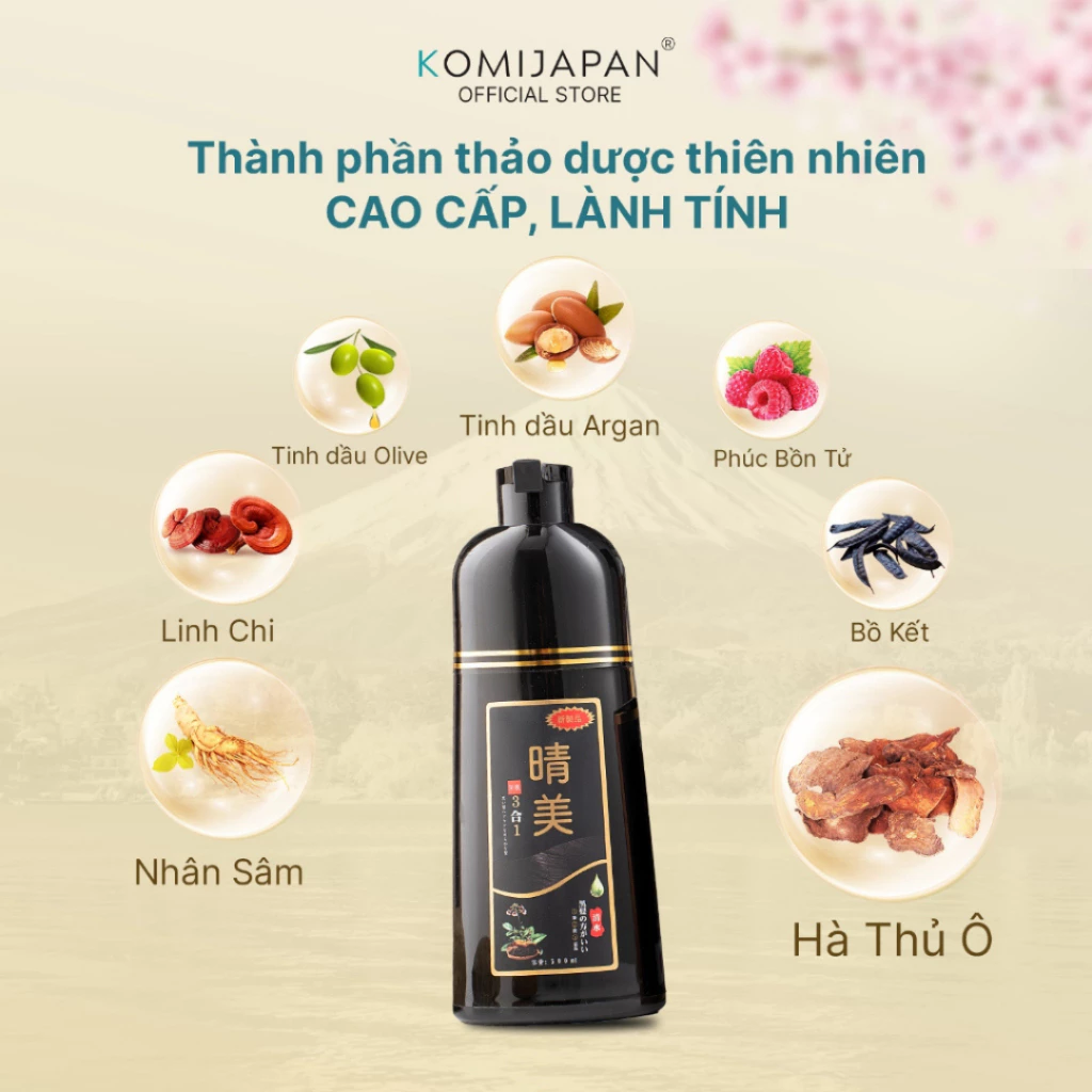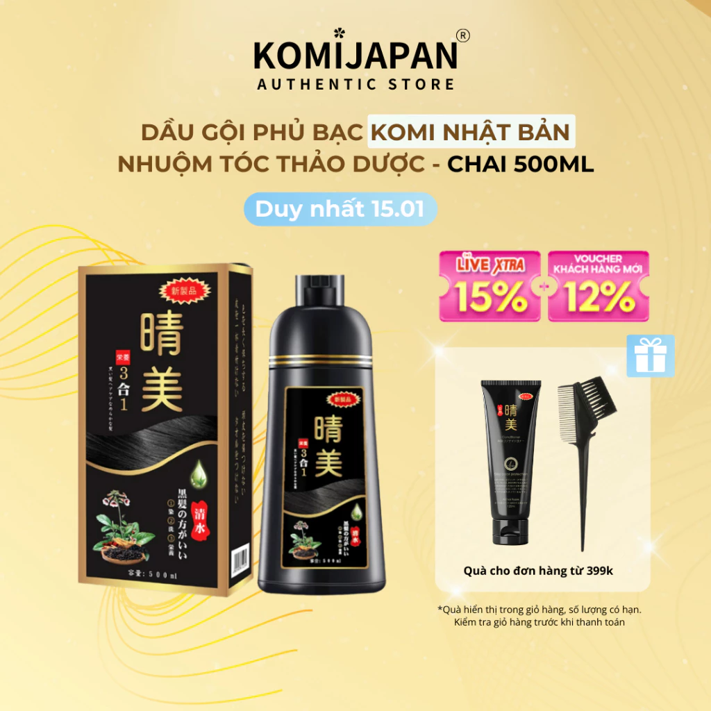 Đánh giá Dầu gội nhuộm tóc thảo dược, dầu gội nâu tóc, đen tóc, phủ bạc Komi Nhật Bản nhập khẩu chính hãng chai 500ml