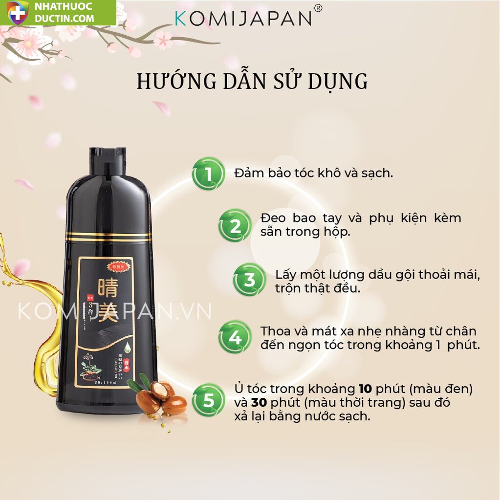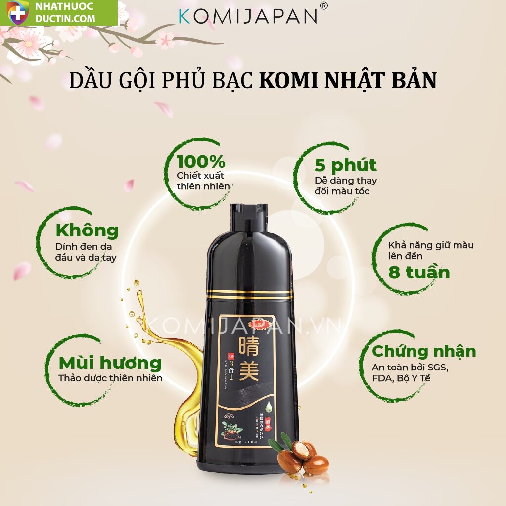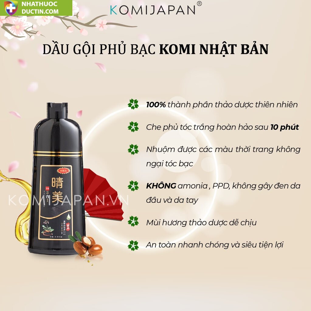 Dầu gội phủ bạc Komi Nhật Bản nhuộm tóc thảo dược thiên nhiên 500ml/1chai