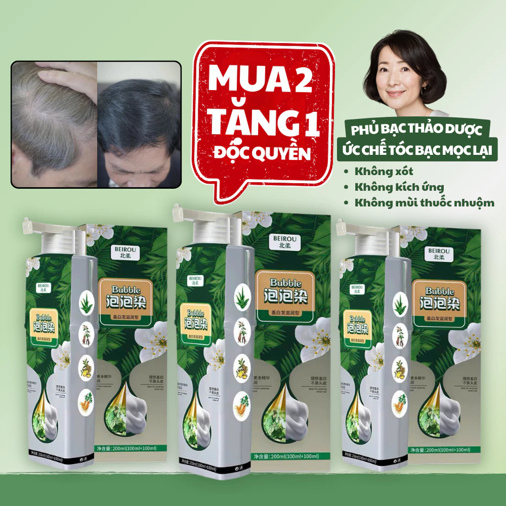 Dầu gội phủ bạc beirou dầu gội nhuộm tóc đen phủ bạc thảo dược hàn quốc an toàn cho da đầu