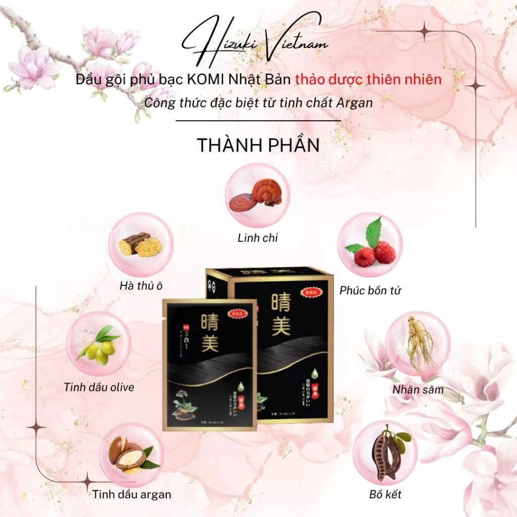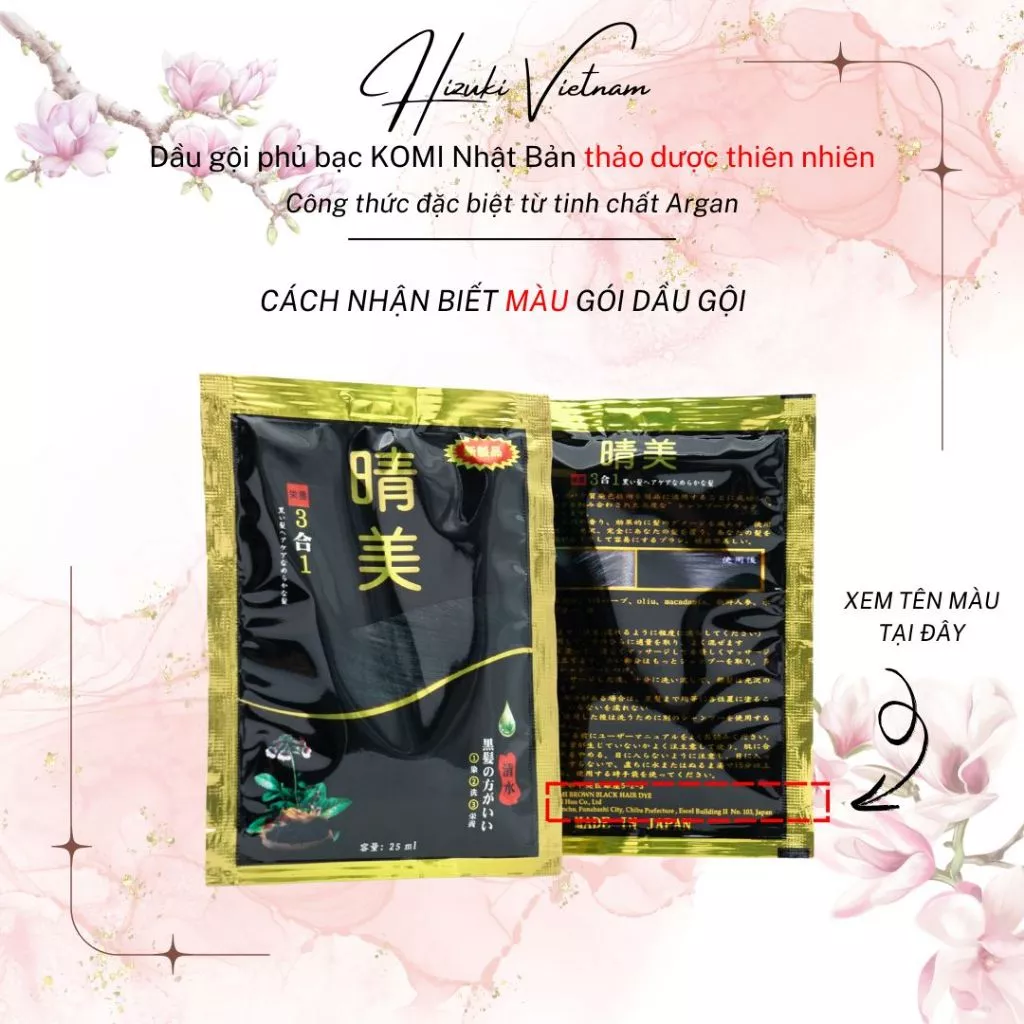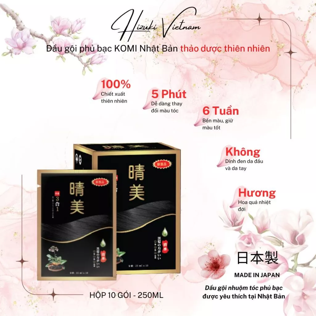 Dầu gội phủ bac Komi Nhật Bản Hộp 10 gói 25ml/gói phủ bạc ngay lần gội đầu tiên