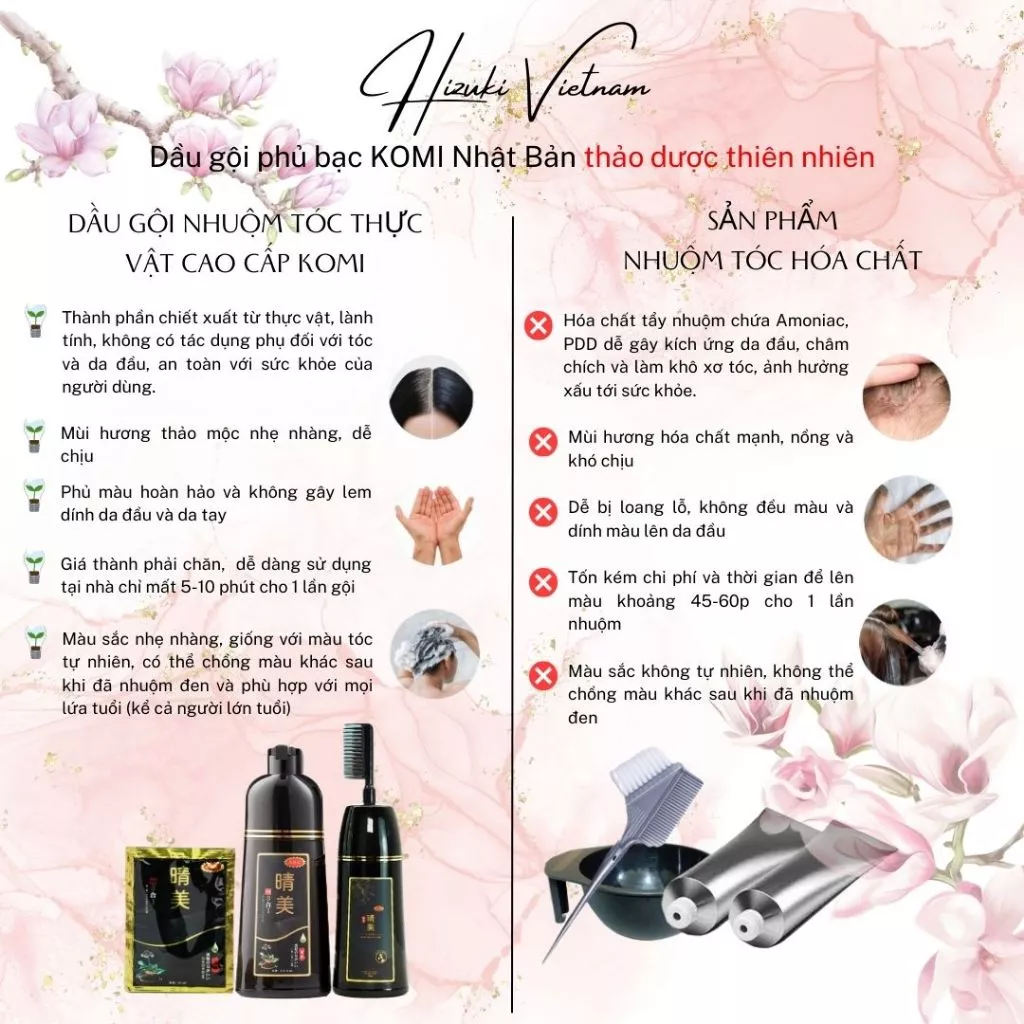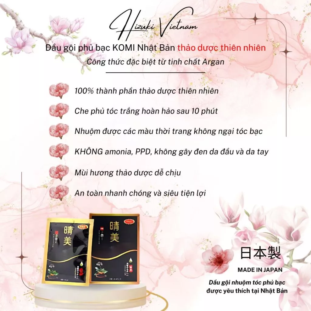 Dầu gội nhuộm tóc Komi là một sản phẩm tốt và đág tin cậy trong việc nhuộm tóc. Với công thức vượt trội đến từ Nhật Bản, sản phẩm này giúp bạn lấy lại mái tóc đen hoàn hảo chỉ sau 5 phút và màu thời trang sau 25-30 phút. Điều này giúp bạn có thể có một mái tóc đẹp tự nhiên nhanh chóng và tiện lợi.