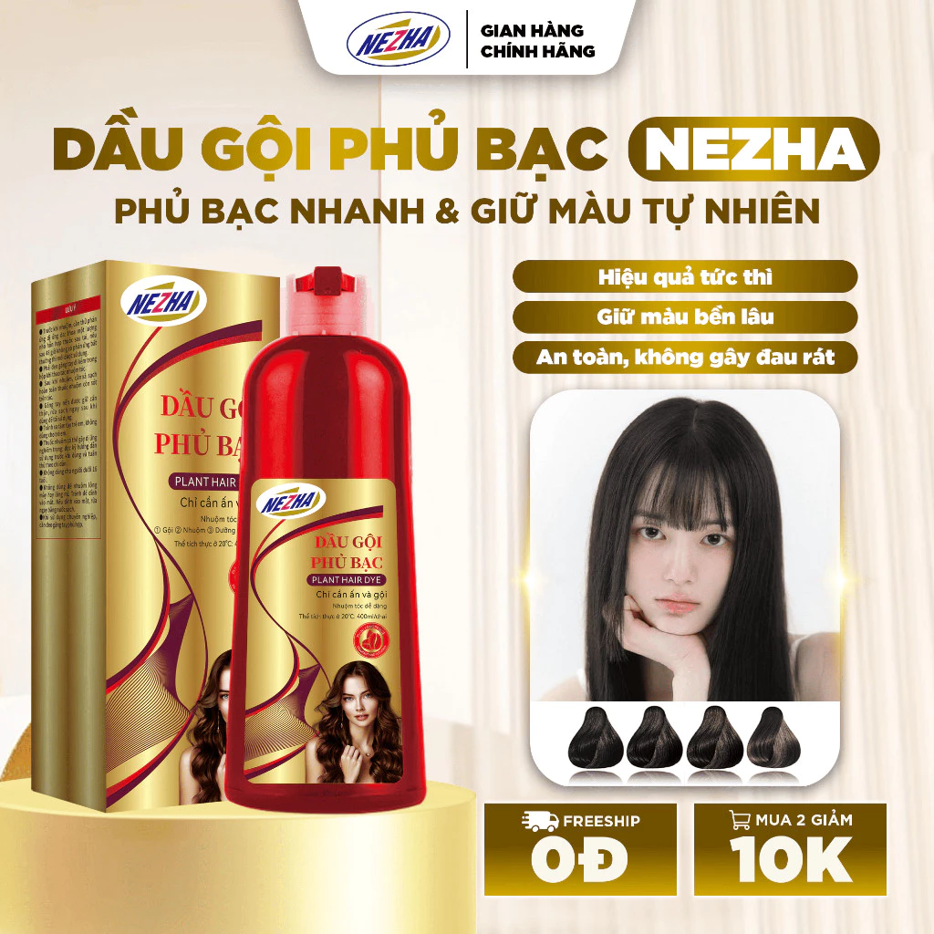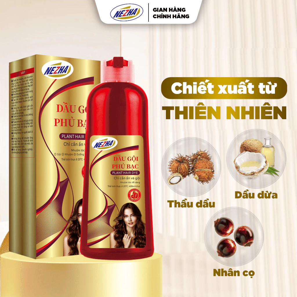 Đánh giá Dầu gội phủ bạc Nezha 400ml Nhuộm tóc Đen và Nâu tự nhiên tại nhà che bạc nhanh bền màu chăm sóc tóc