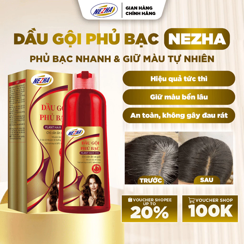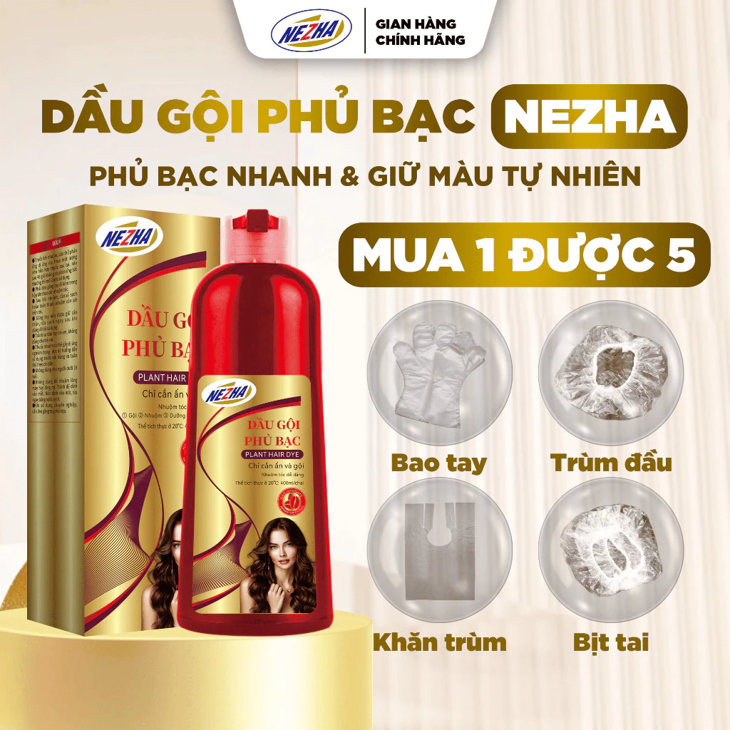 Dầu gội nhuộm phủ bạc Nezha 3in1 là giải pháp hoàn hảo giúp che phủ tóc bạc, nhuộm tóc đều màu, đồng thời nuôi dưỡng và bảo vệ tóc chỉ sau một lần sử dụng. Sản phẩm thích hợp cho cả nam và nữ, dễ dàng sử dụng tại nhà mà không cần ra tiệm, tiết kiệm thời gian và chi phí.