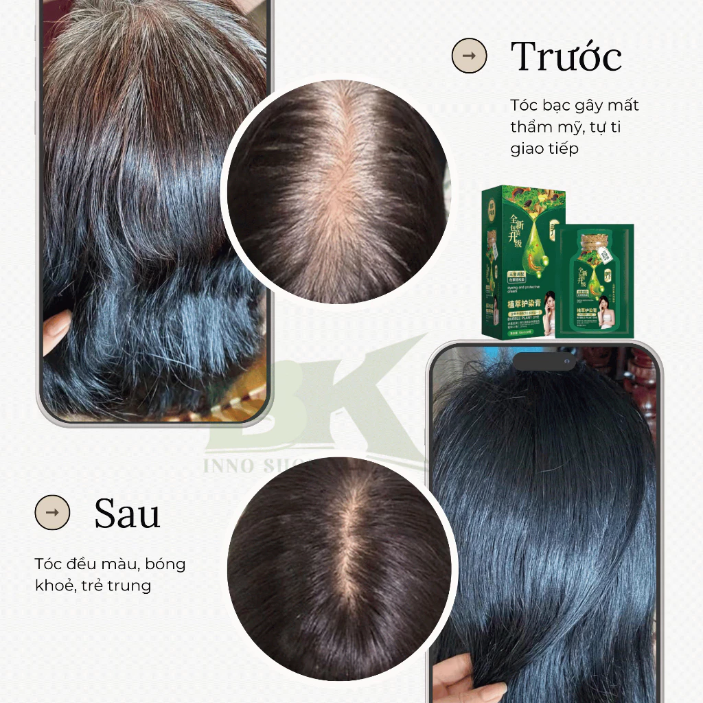 Đánh giá Dầu Gội Phủ Bạc Thảo Dược – Hộp 10 Gói Tinh Chất Nhuộm Tóc Thảo Dược Tại Nhà,nhuộm tóc tại nhà