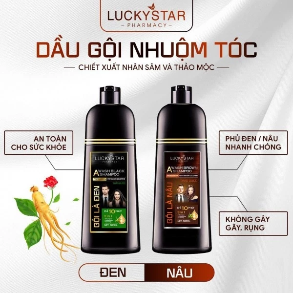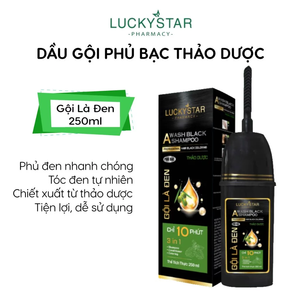 Dầu gội phủ bạc thảo dược Lucky Stars – gội là đen 250ml, chiết xuất thảo dược, phủ bạc nhanh chóng tại nhà