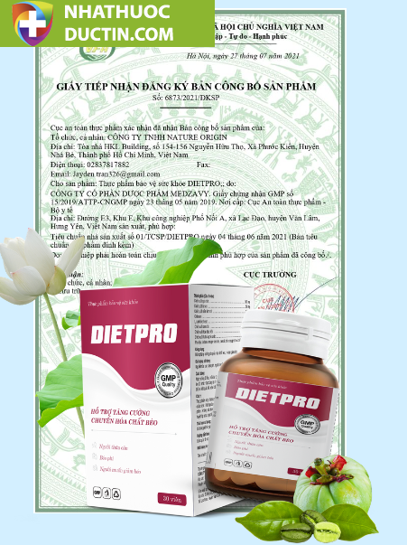 Diet Pro không chỉ đơn thuần là một sản phẩm giảm cân mà còn là thực phẩm bảo vệ sức khỏe được chiết xuất từ thảo dược tự nhiên. Với giấy chứng nhận GMP số 15/2019/ATTP-CN GMP, Diet Pro đã khẳng định được chất lượng và độ tin cậy của mình trên thị trường.