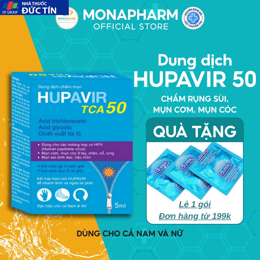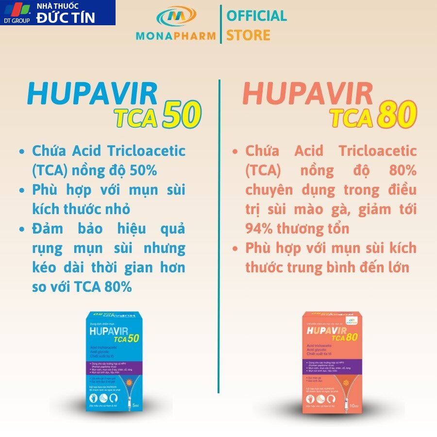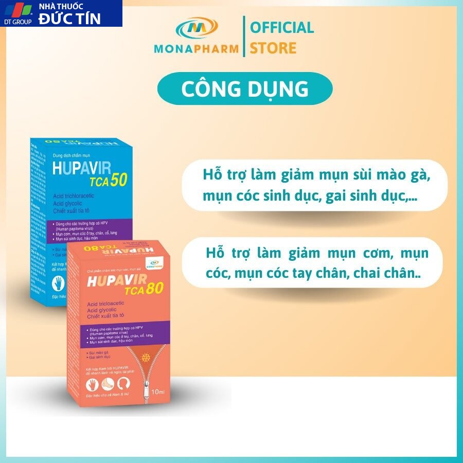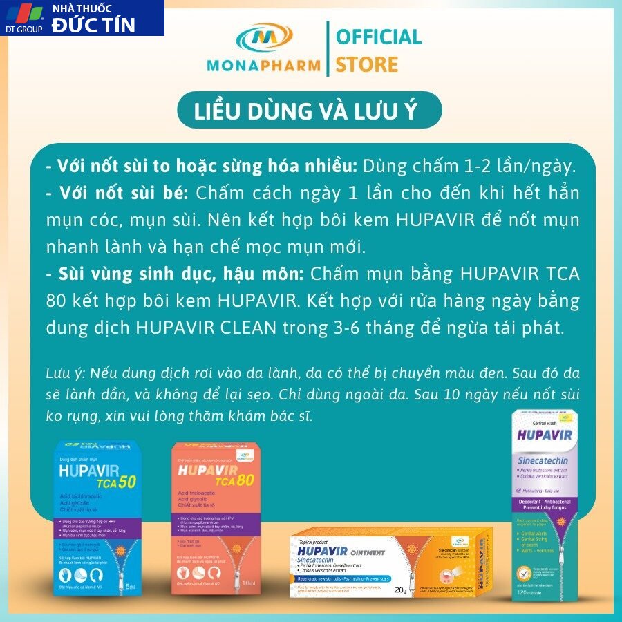 – Hupavir TCA 50: sùi to và bé, gai sd, chuỗi hạt ngọc nam giới dùng liên tiếp, mỗi ngày 1 lần tới khi rụng.