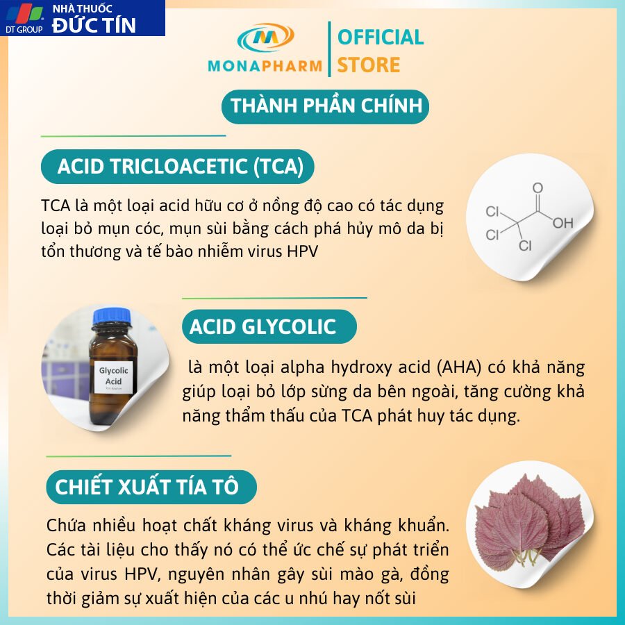 Thành phần Acid Tricloacetic 80% mang lại hiệu quả sạch tổn thương sùi mào gà cao, có thể lên tới 94% với tỷ lệ tái phát thấp.