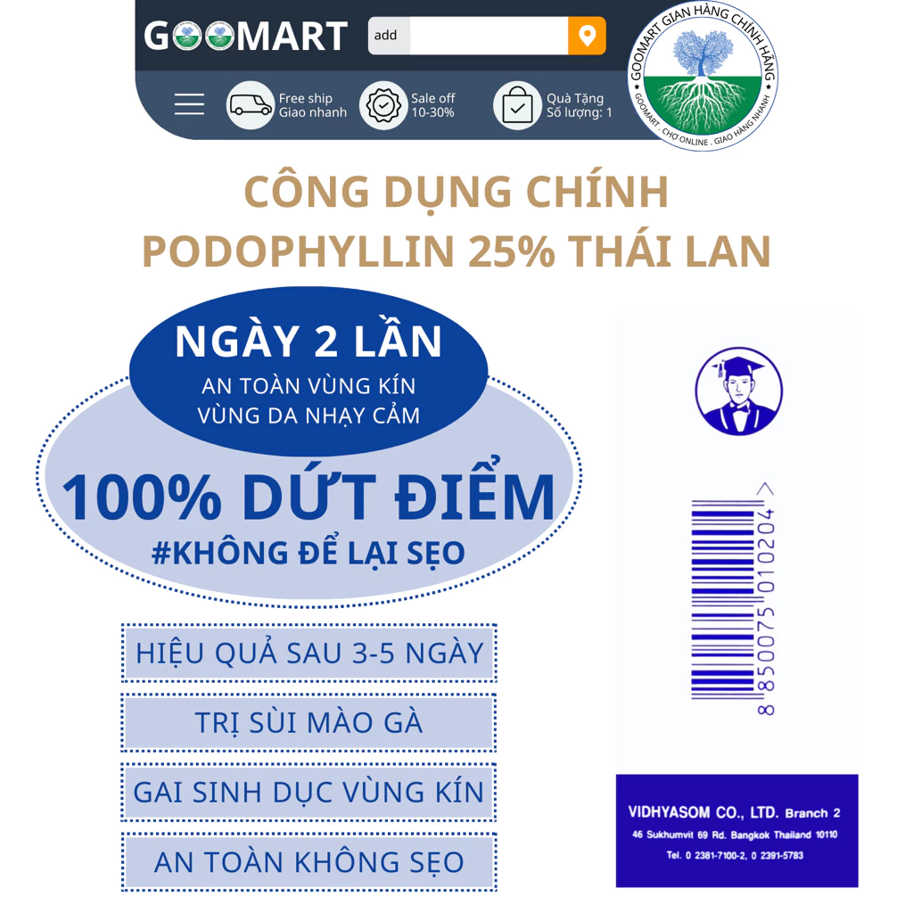 ● Thương hiệu: PODOPHYLLIN PATINT, CO.