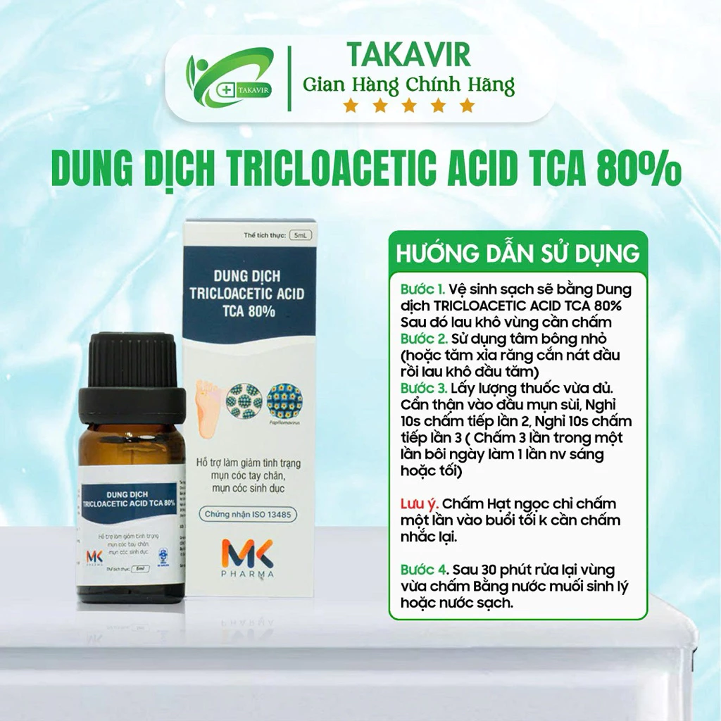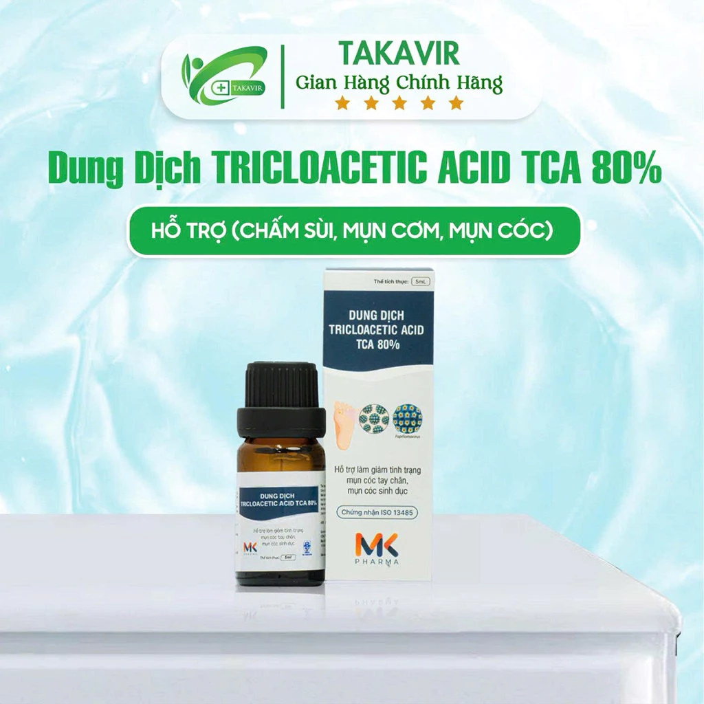 Dung Dịch TRICLOACETIC ACID TCA 80% Lọ 5Ml- Hỗ trợ chấm mụn cóc tay chân, mụn cóc sinh dục, hạt ngọc, sùi MG