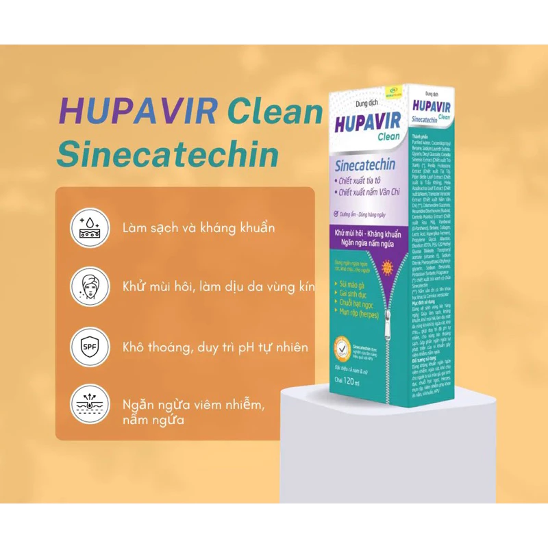 Đánh giá Dung dịch vệ sinh Hupavir Sinecatechin Clean 120ml hỗ trợ Sùi mào gà, gai, herpes rửa hàng ngày cho cả nam và nữ