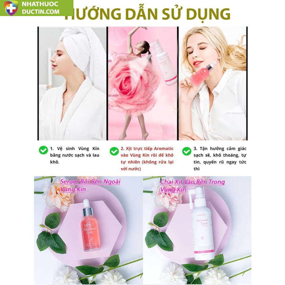 2. Xịt trực tiếp Thousand Love vào Bên Trong Cô bé, rồi Để Khô tự nhiên (không rửa lại với nước)