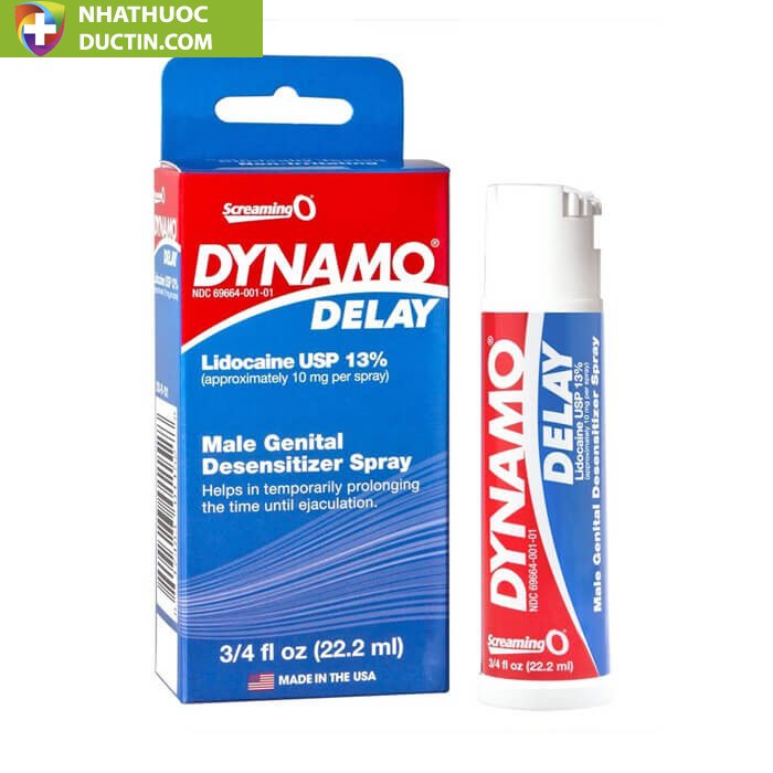 Dynamo Delay là dòng sản phẩm có xuất xứ từ USA với tác động tích cực giúp kéo dài thời gian quan hệ, giúp nam giới kiểm soát tình trạng xuất tinh sớm của bản thân. Sản phẩm là dạng xịt gây tê rất tiện dụng và có thể mang đi đến bất cứ đâu, Dynamo Delay sẽ là giải pháp giúp phái mạnh luôn ở “cửa trên” khi đối diện với người phụ nữ mà mình yêu thương.