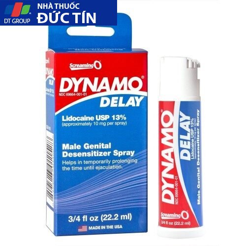 Thuốc chống xuất tinh sớm Dynamo là sản phẩm hỗ trợ khả năng tình dục cho nam giới có xuất xứ từ Mỹ, được điều chế dưới dạng chai xịt tiện dụng. Dynamo Delay 22.5ml là một dòng sản phẩm chất lượng của hãng Momentum Magagement tại USA, được hiệp hội FDA (Mỹ) chính thức công nhận là dược phẩm an toàn, được cho phép lưu hành trên khắp thế giới.