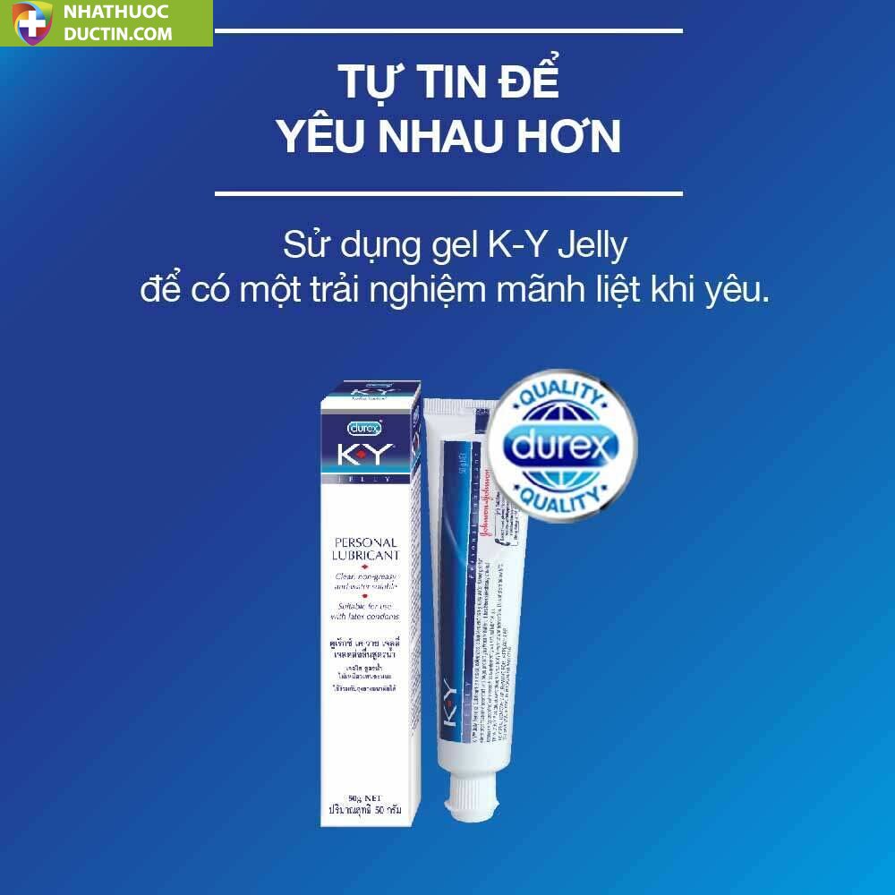 Gel Bôi Trơn Durex KY Jelly 50g của nhãn hàng Durex là dòng gel bôi trơn cơ bản được ưa dùng nhất trên thế giới. Sản phẩm có thành phần gốc nước, tương tự như chất nhờn của phụ nữ, dễ dàng vệ sinh và tẩy rửa, không để lại mùi, không có tác dụng phụ, an toàn tuyệt đối khi sử dụng.