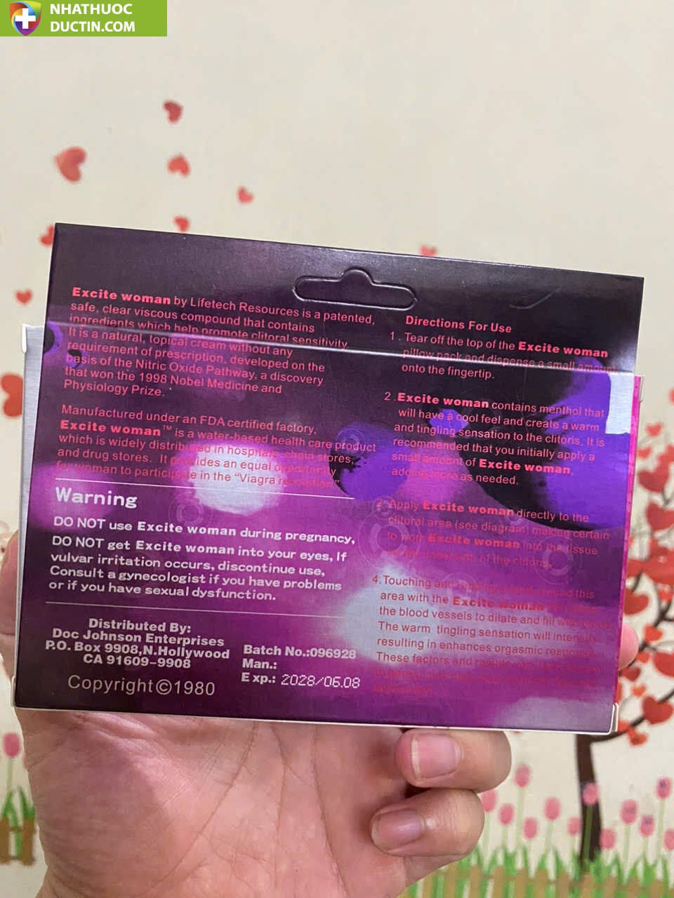 – Gel bôi trơn tăng khoái cảm nữ Excite .Là Dòng sản phẩm nổi tiếng thương hiệu LifeStyles USA phân phối rộng khắp.
